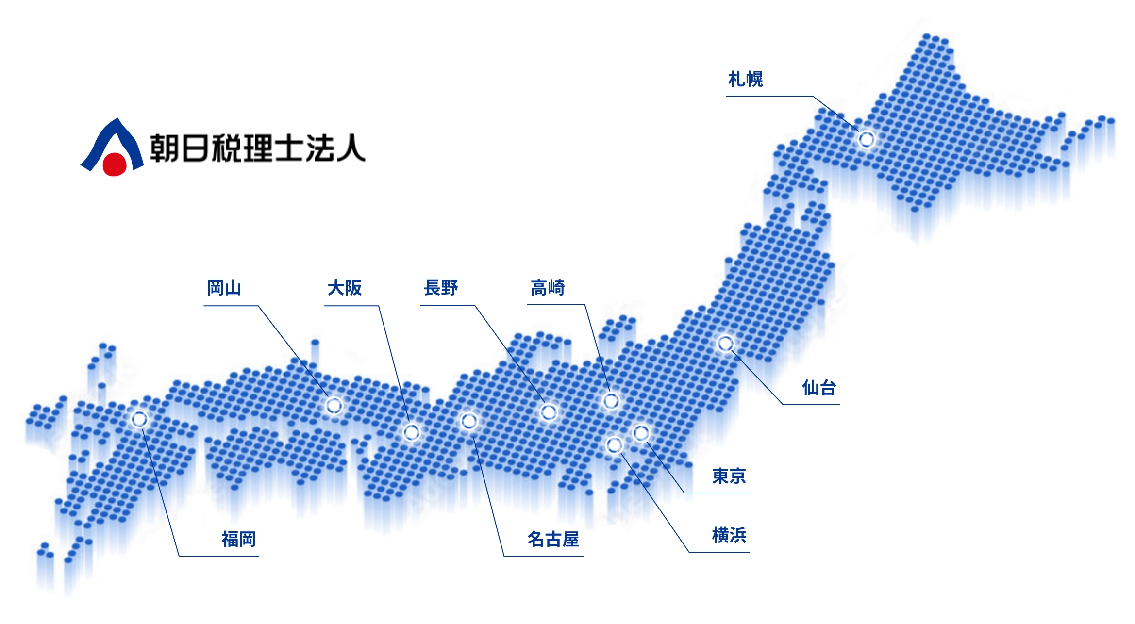 また、朝日税理士法人全国ネットワークとのリレーションを行う事によって、全国隙間のないサービスを提供しています。さらにはアジア経済圏のニーズに応えるべくASEAN諸国の拠点があります。